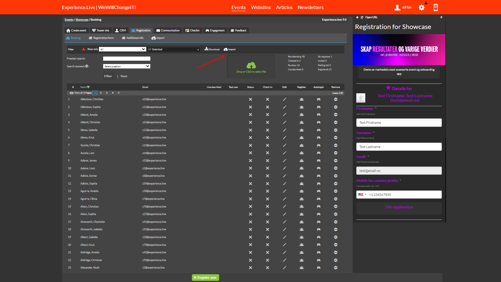 Here you can export, edit and import all the data of all participants (Registration, Private Questions and Feedback) in Excel.