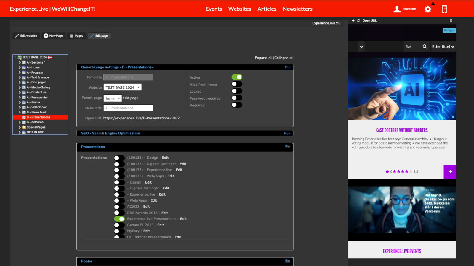 - "Locked" - This option allows you to lock the page from beeing edited and / or deleted. To edit or delete the page uncheck the "Locked" and click "save" then it is ready for editing and deleting under "List pages".