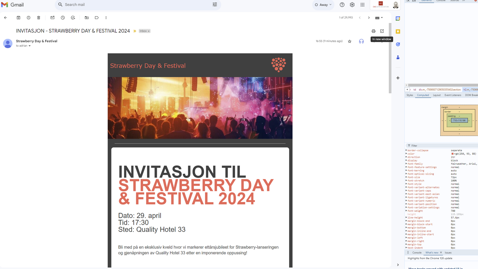 3. Email wrong style - the emails we are sending didn't look to good on Outlook Email Client for PC or the mobile APP so we had to fix it a little bit with some HTML/CSS code injection in backend HTML area