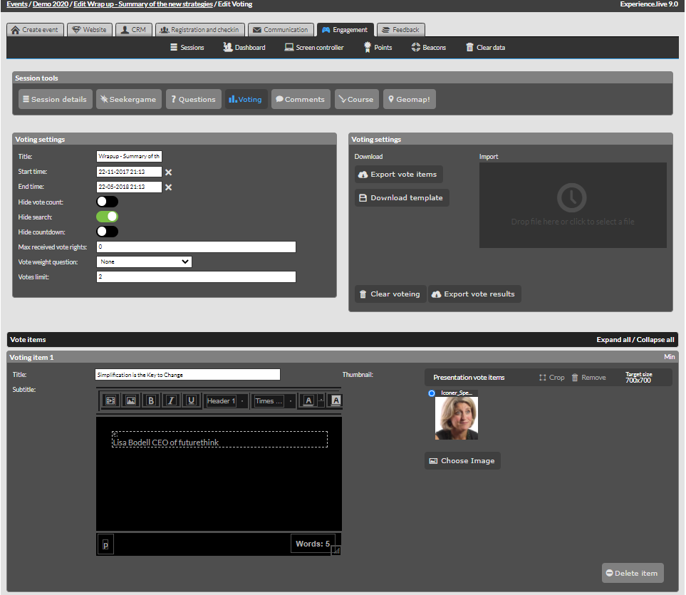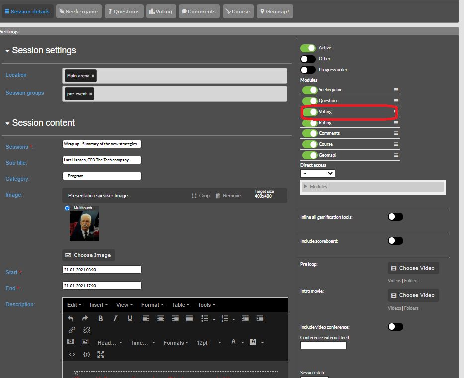 To Activate Voting Module you need to go to Session edit and enable it.