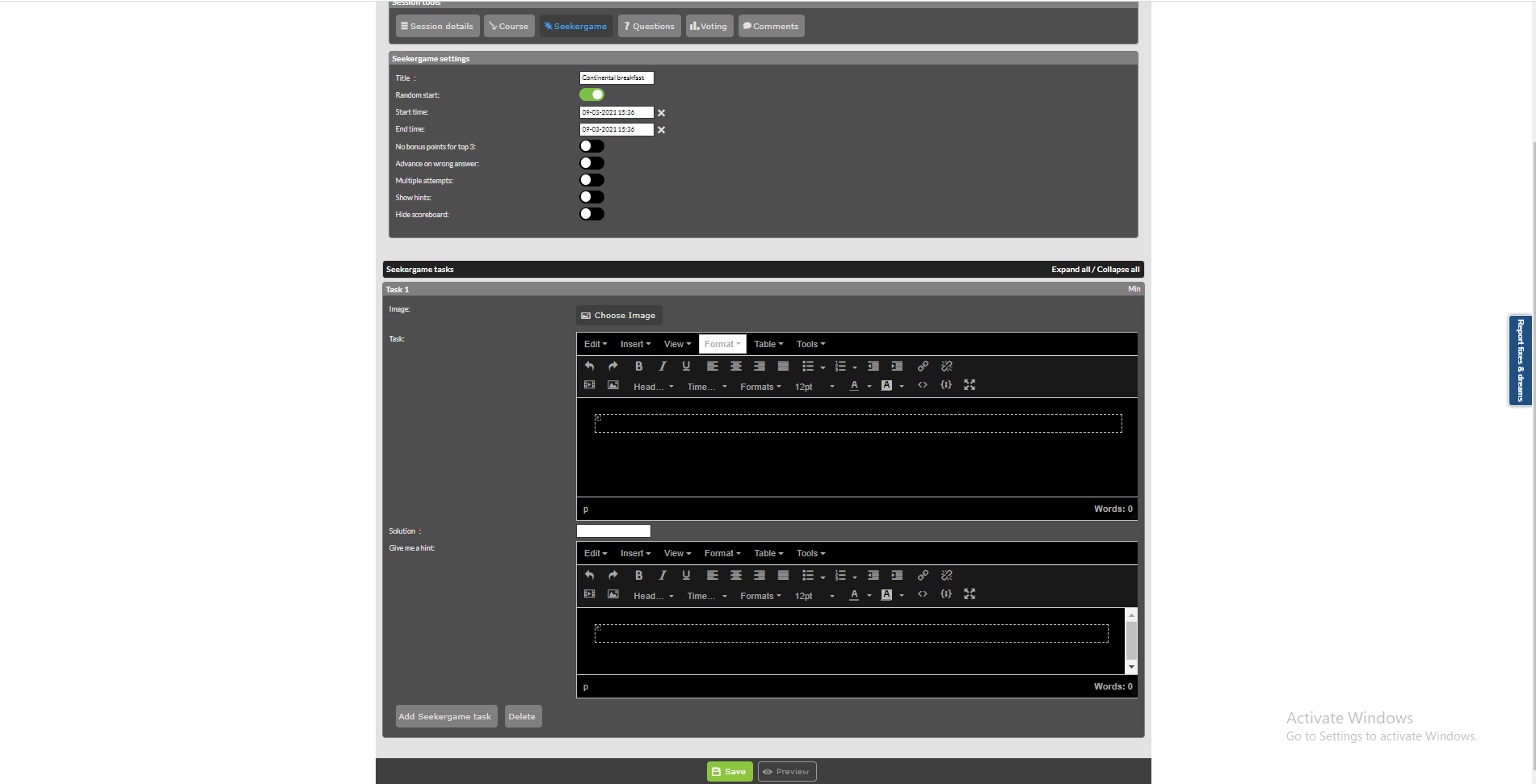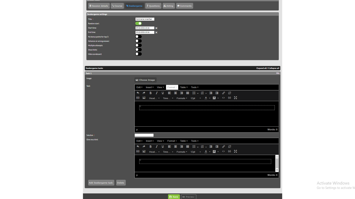 To create a "seeker game" must first enable the module in the session.