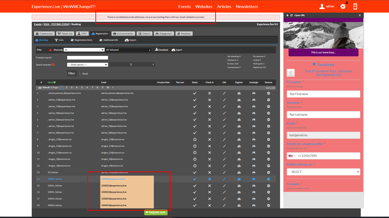 After we validated the emails and all is good we can see them updated ready to send too in the Email Communicator part too. We can still see the validating message in top part because this message is per solution - so other people might validate new users.